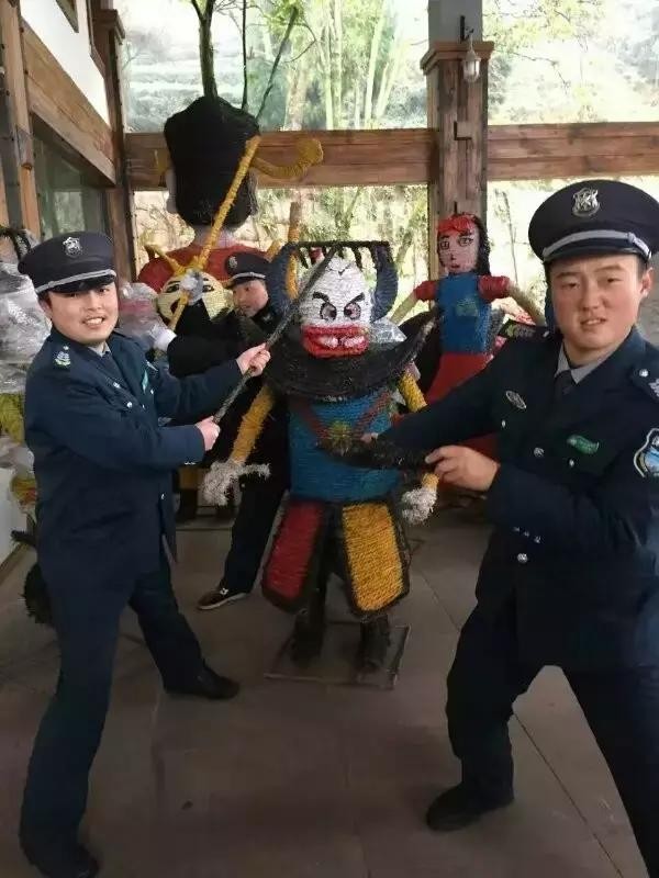 据说蒙顶山最近还在筹备撒子稻草人活动,人家大 boss说:不下雪就把这些草草娃娃给搬了!结果稻草人才弄两三天就下雪了,天公作美,保安哥哥先开心的耍起来了!
