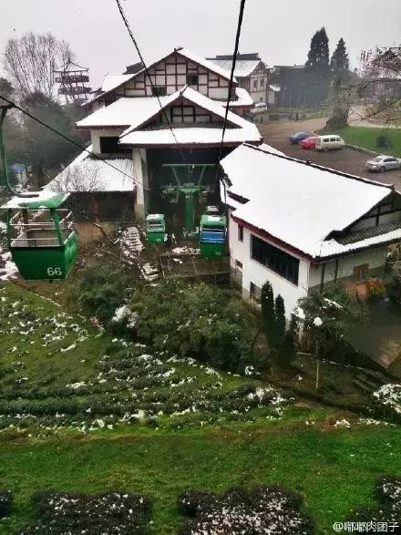 昨天一早起来,前线的小伙伴就发来喜讯,蒙顶山下雪啦!地上零星点点,可是房子都铺了一层了!