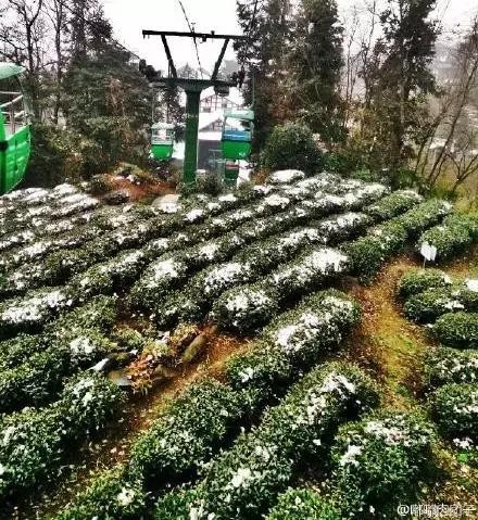 一排排的茶树上都撒起白花花的雪,都说瑞雪兆丰年,看来明年蒙顶山的茶叶肯定特别棒!