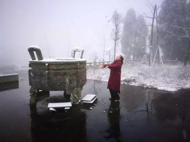 峨眉山上早就堆雪了,人家昨天搞了个冰雪温泉节,看来小眉眉雪很多嘛!