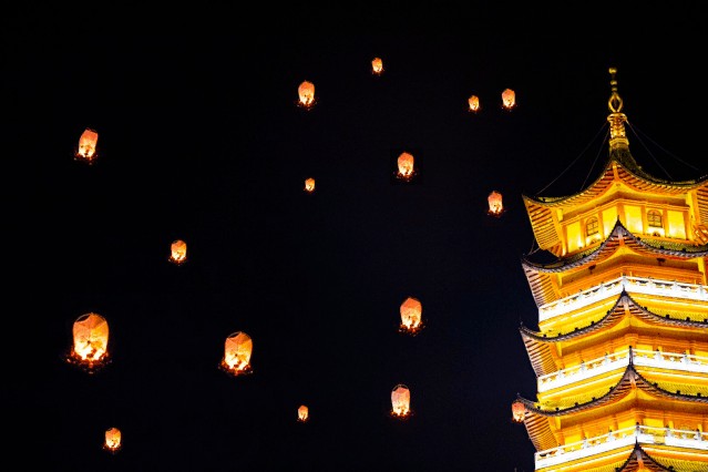 看科技表演,借孔明灯祈愿一切皆安
