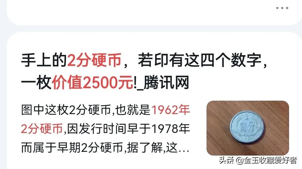 网传1962年2分硬币价值2500元!千万别信,谣言!真相是这样的