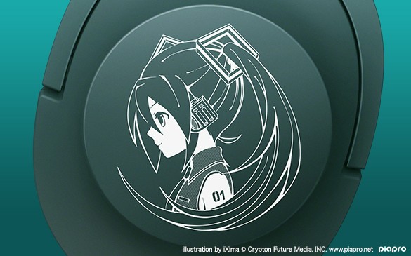 “MIKU MODEL”款是铬绿蓝的耳机,耳罩部分刻印有初音未来侧颜的LOGO。