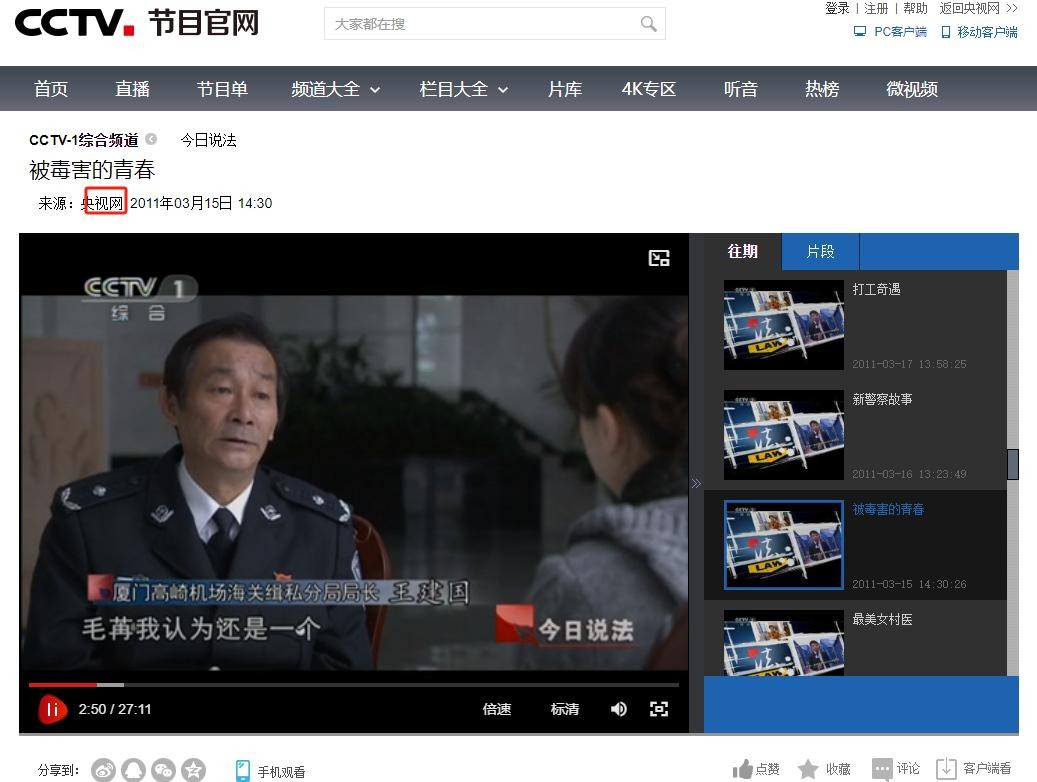 信息来源:央视网《今日说法》2011年3月15日——被毒害的青春