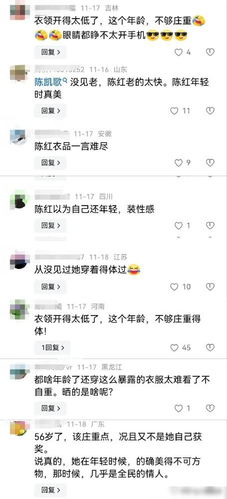 但也有些人认为陈红的这身装扮与她的身份不符。