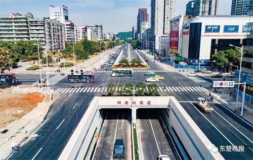 ▲ 2018年,我市对湖滨大道进行改造,采用双向六车道城市主干道标准设计,于9月30日改造竣工通车,填补我市没有车行下穿隧道的空白。