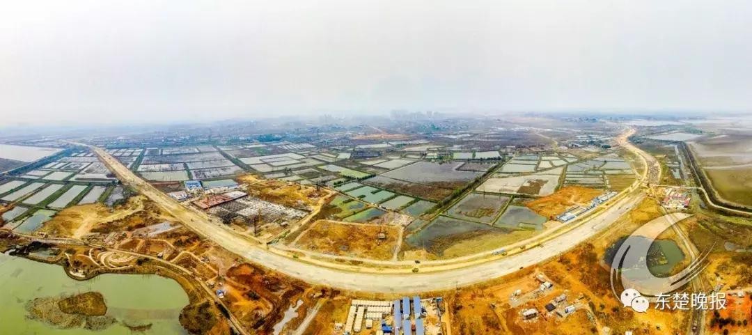 ▲ 2016年3月,大冶湖生态新区还是成片的鱼塘,园博大道施工便道横跨新区,园博园、矿博园等工程桩基施工有序进行。 记者 周巍 摄