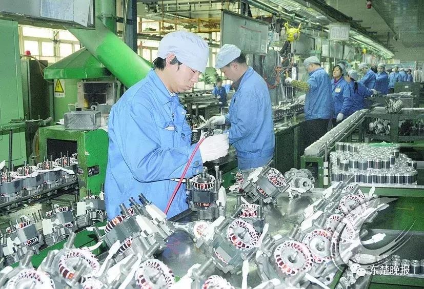 ▲ 近年来,东贝集团把科技创新作为打造自己核心技术的关键环节,实现从“黄石制造”朝着“黄石智造”转变。2018年,公司销量冲刺3500万台,单个品牌销量迈进世界第一方阵。图为,黄金山东贝工业园自动化生产线一片繁忙。