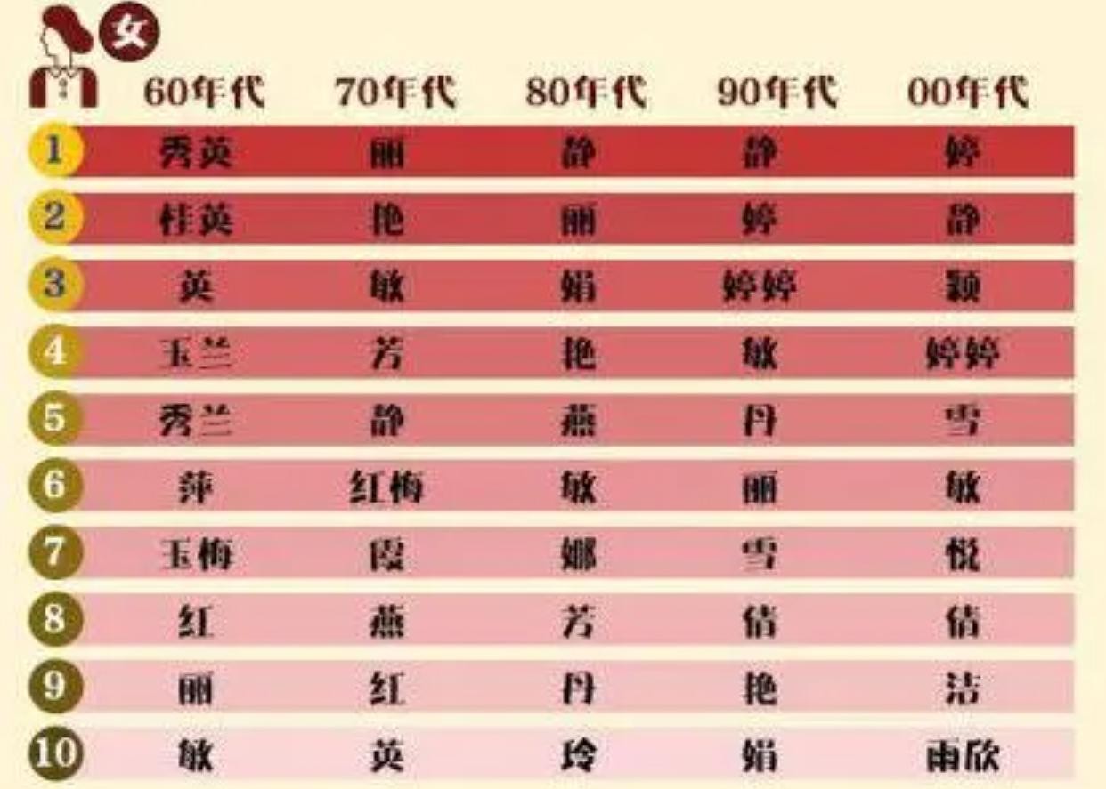 每个时代的流行名字,都像是时光的印记,记录着那个年代的特点和父母们的愿景。