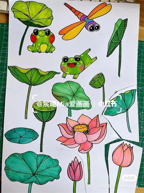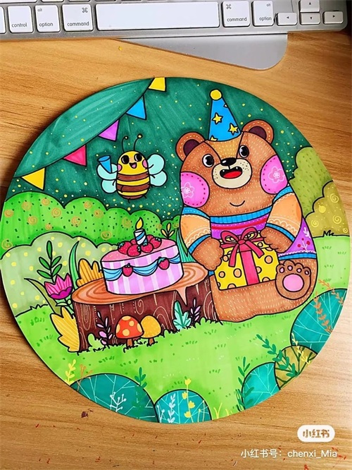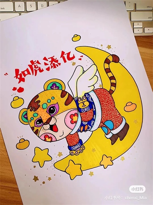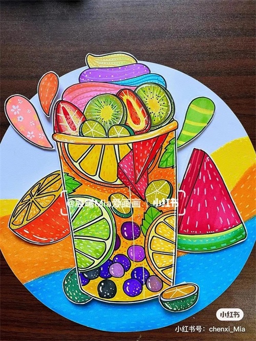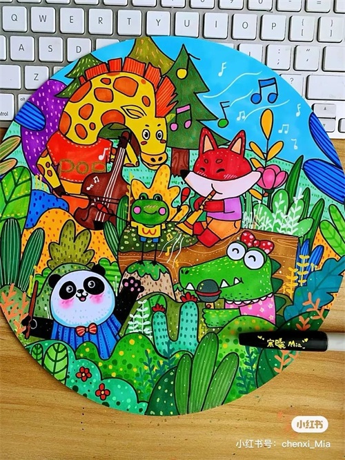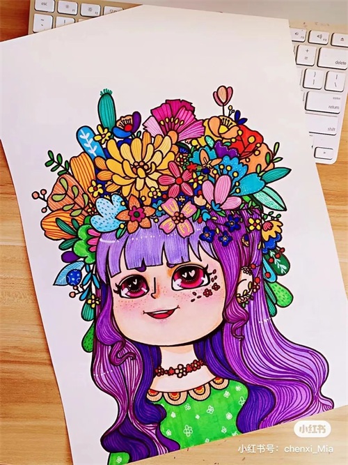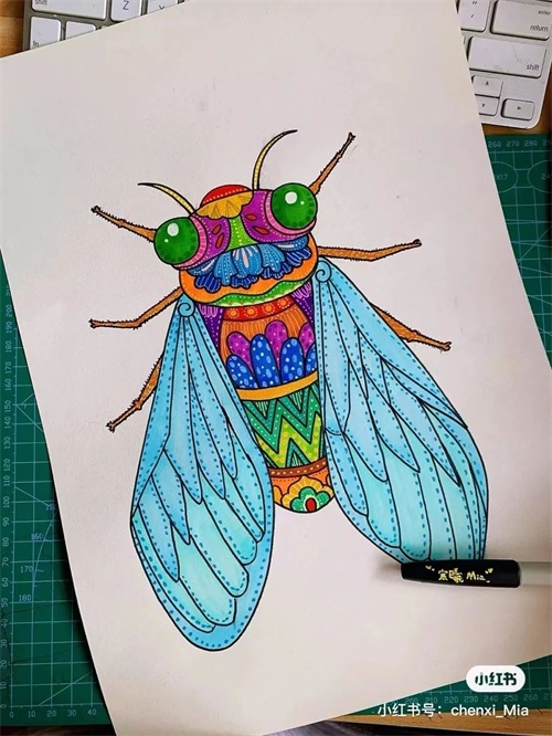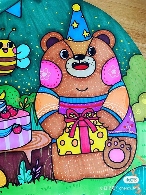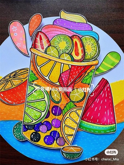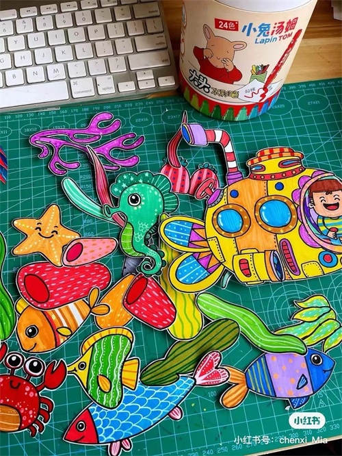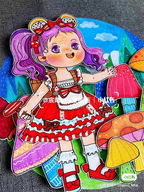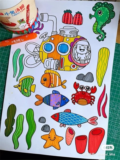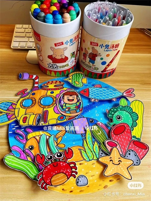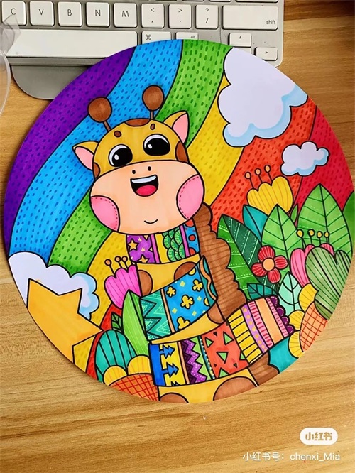 工具材料:马培德丝滑炫彩棒+大头水彩笔、黑色油性勾线笔、彩色高光笔+8k的荷兰卡、剪刀、双面胶,发挥你的想象,动起手来吧!