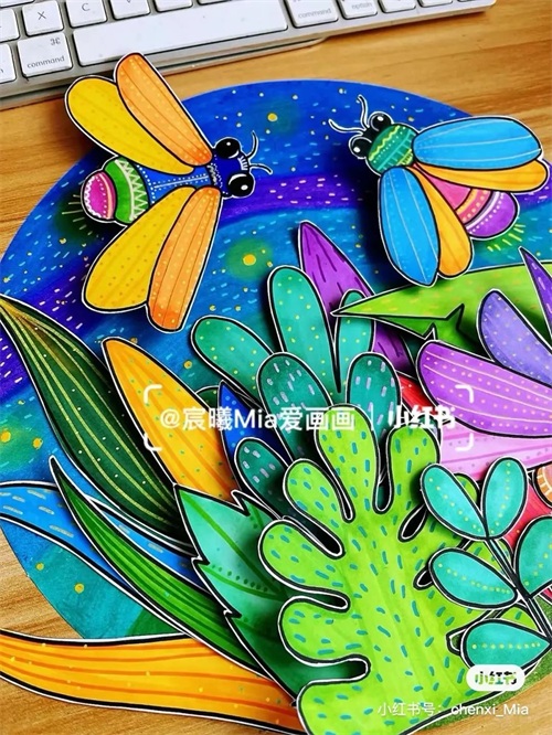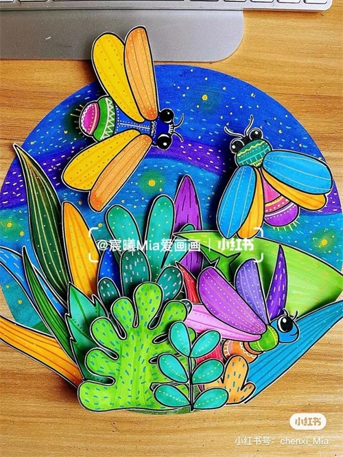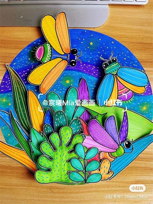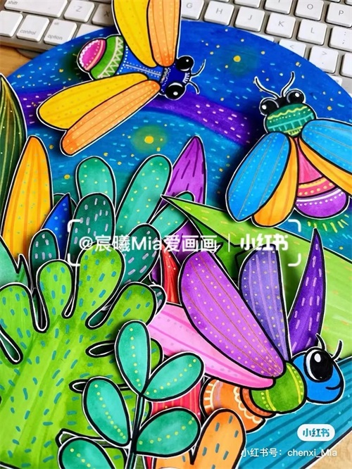儿童绘画素材——萤火虫之夏(立体贴画)