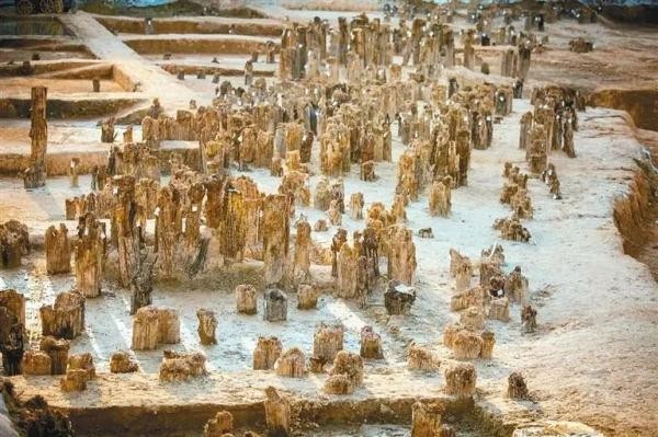 通过观察解剖沟剖面,发现桥桩之上存在着多层因河流流动及改道形成的沙层和卵石层,说明在桥梁废弃后,该区域经历了多次河流冲刷及改道,除木桩外,其他桥梁结构及周边遗物已完全不存。
