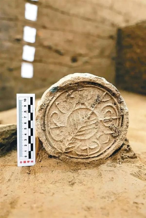 在朱雀大街的东侧,还发现一条南北向水沟,为朱雀大街的东侧路沟,出土有隋五铢、开元通宝、乾元重宝铜钱,还有陶盏、罐、背水罐、白瓷盒、褐釉双鱼壶、莲花纹瓦当等。
