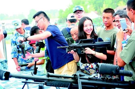 随后,现场观众参加了国防开放日活动,在装备展示区和体验区,他们近距离接触了在开幕式中进行汇报演示的空降兵武器装备,体验了部分武器的射击性能,进一步感受了中国空降兵近年来的变化发展。
