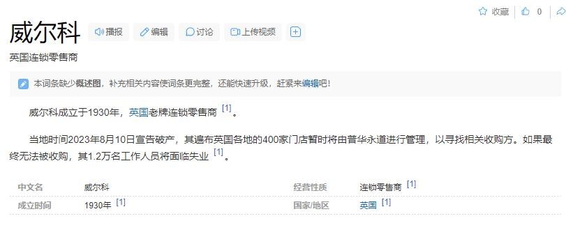 但有些承受不住通货膨胀带来的巨大压力,面临的也会和诺丁汉一样的结局,就比如英国的一个老牌连锁零售商——威尔科。