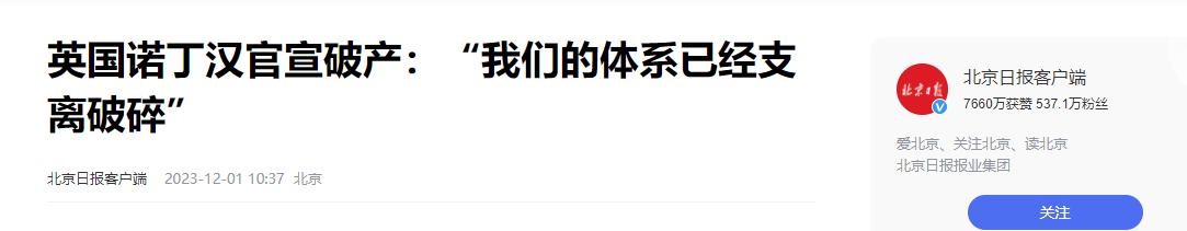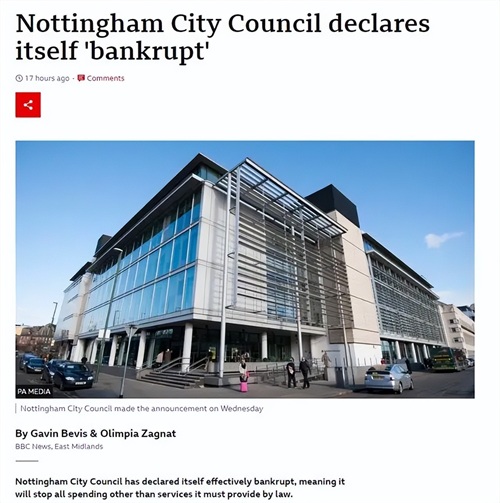 去年冬天,英国第二大的城市诺丁汉竟然也官宣破产了,还透露出破产的主要原因,因为社会人群需要护理的和流浪者的援助金都在不断地往上升,开支越来越大,再加上国家内部的通货膨胀,种种因素导致市政府无法继续承担这巨大的资金压力。