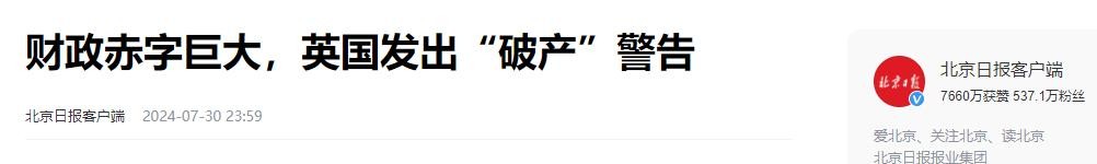 信息来源:财政赤字巨大,英国发出“破产”警告 北京日报客户端2024-07-30 23:59