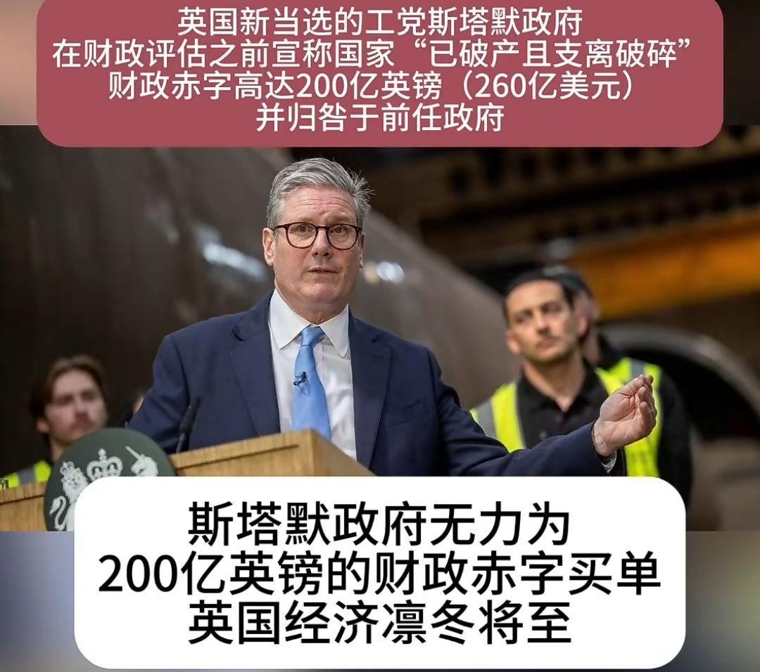 英国首相斯塔默声称英国财政现在已经有200亿英镑的漏洞,那么我们换算成人民币就是1854.28亿,这么庞大的数字真是惊为天人。