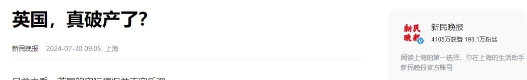 信息来源:英国,真破产了? 来源:新民晚报 2024-07-30 09:05