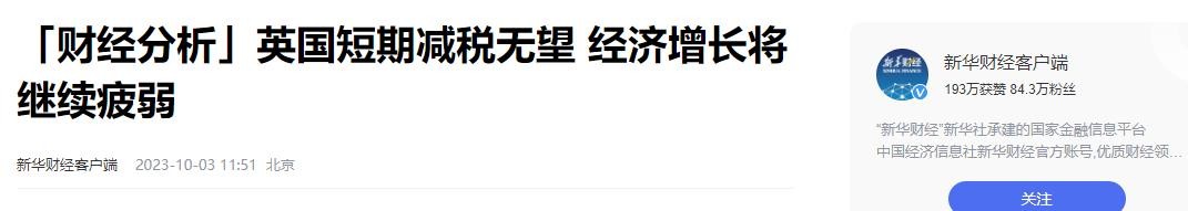信息来源:「财经分析」英国短期减税无望 经济增长将继续疲弱 来源:新华财经客户端 2023-10-03 11:51