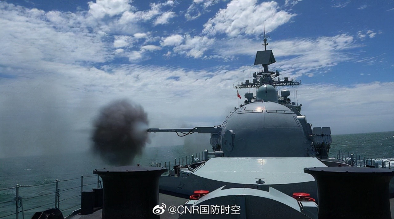 “杭州”舰AK-130舰炮对海射击