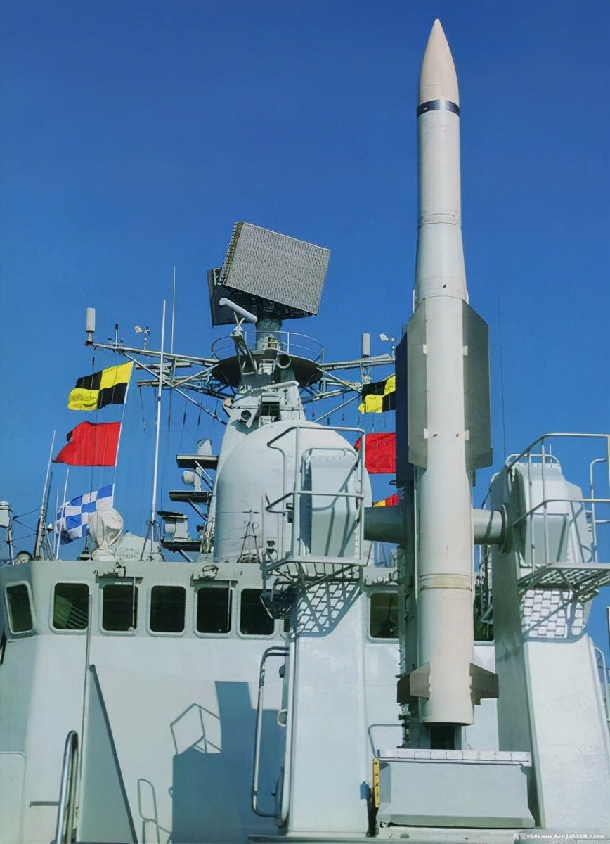 改装前的“杭州”舰在舰体前后分别布设了一套“施利基”舰空导弹发射系统,各备SA-N-7导弹24枚,最大射程只有25公里。采用单臂发射,发射速度较低,且有较大的射击死角。此次”杭州“舰撤掉了2套“施利基”舰空导弹发射系统,换装了2套4×8单元的垂发系统,该系统与054A护卫舰上的垂发系统属于同一型号。这样一来,“杭州”舰拥有了32个垂发系统,可以发射HQ-16B舰空导弹,最大射程70公里,也可以发射反潜导弹。