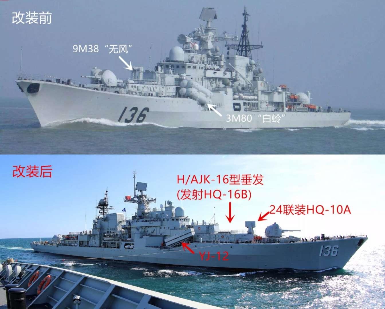 进入21世纪,随着052C、052D驱逐舰以及054A护卫舰如雨后春笋般地出现,“现代”级驱逐舰在海军中的地位就很尴尬了。论防空,比不上4000吨级的054A护卫舰;论反舰,比不上052C以及052D驱逐舰;论电子系统,甚至比不上吨位比其小很多的054A护卫舰。作为昔日海军的“四大金刚”,海军还没有“土豪”到让其退役的地步,只能对其进行现代化的改进,以适应现代化的海战需求。