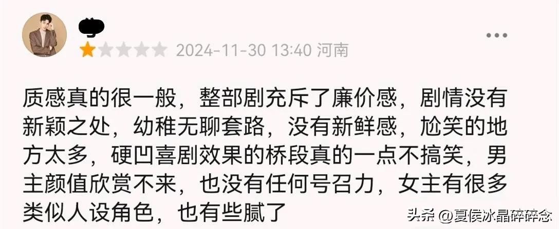 有部分网友对这部剧提出批评,主要针对1、剧情逻辑BUG,不符合常情,近些年大女主经商题材剧屡见不鲜,内容上大同小异,一些观众表示故事俗套,没有新意,有种廉价感,尬笑的地方太多。