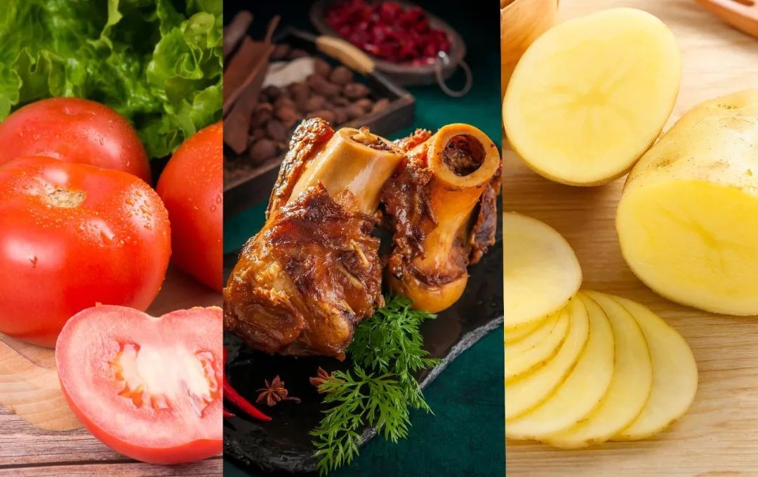 新鲜牛脊骨,洋葱,土豆,番茄