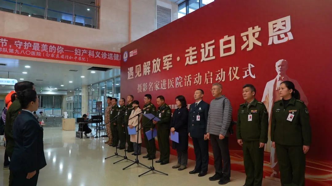 为讲好新时代白求恩故事,赓续红色血脉,传承弘扬光荣传统,3月8日,白求恩国际和平医院联合与河北青年报社、河北省医药卫生文化学会摄影分会(河北省卫生摄影协会)共同举办了“遇见解放军·走近白求恩”摄影名家进医院活动。