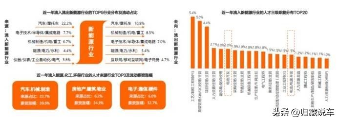 地域分布方面,华东地区新能源企业需求最旺盛。,新能源行业人才分布主要集中在北京、上海、深圳、苏州、常州等一线及新一线城市;从跨行业人才的流动去向来看,跨行业流入新能源领域的人才主要流向上海、宁德、北京、深圳、苏州等地,非一线城市的宁德、盐城、镇江、惠州等城市由于企业及项目布局的原因,也吸引了更多跨行业人才加入。