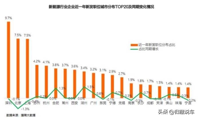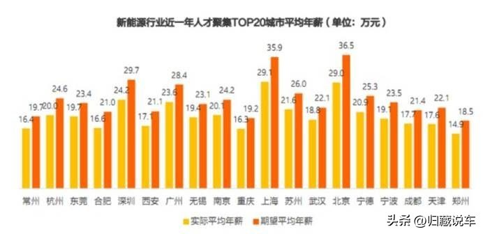 从平均年薪上看,待遇与当地的经济发展、人均收入、生活成本等有一定关系,同时也与当地新能源企业对岗位的设置及人才竞争力有关。某大数据平台显示,近一年来华北地区新能源人才平均薪资最高,其次是华南、华东两个区域。以城市为单位看,上海、北京、深圳平均薪资是最高的。