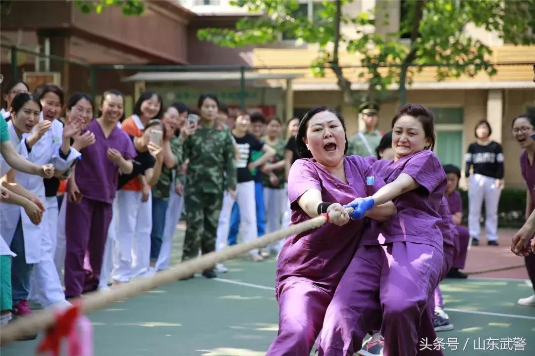 △穿紫色衣服的是医院手术室ICU参赛队,她们大部分是在护理岗位工作了几十年的老护士,拔起河来一点不输年轻的小姑娘。