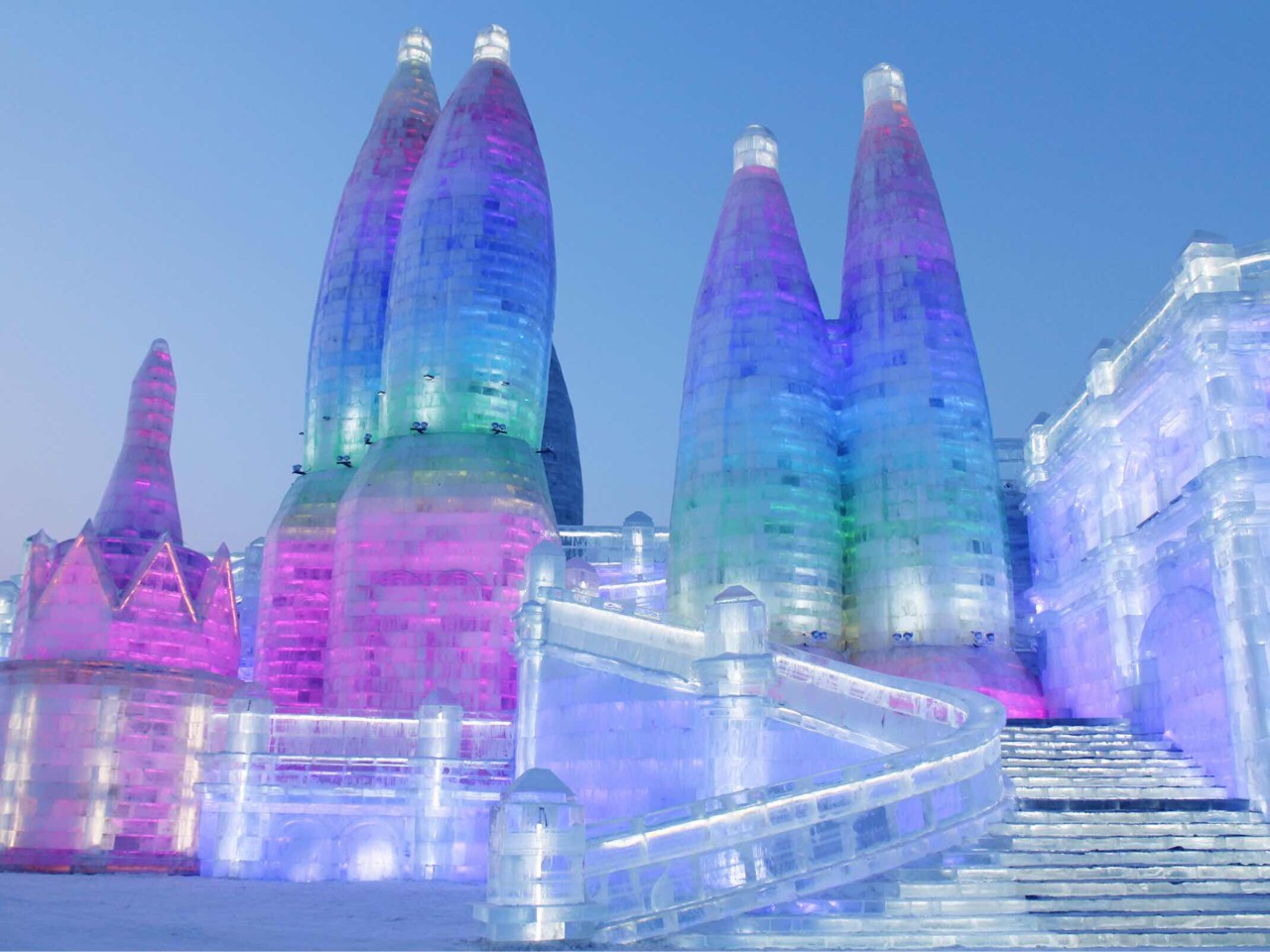 景点特色和亮点:哈尔滨冰雪大世界以其壮观的冰雪雕塑和冰灯景观而闻名。游客可以欣赏到巨大的冰雪建筑、雕塑和精美的冰灯艺术作品。景区还提供各种冰雪活动,如滑冰、滑雪等,让游客沉浸在冰雪世界的魅力中。