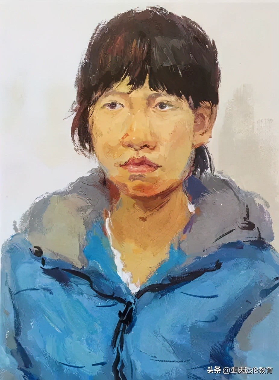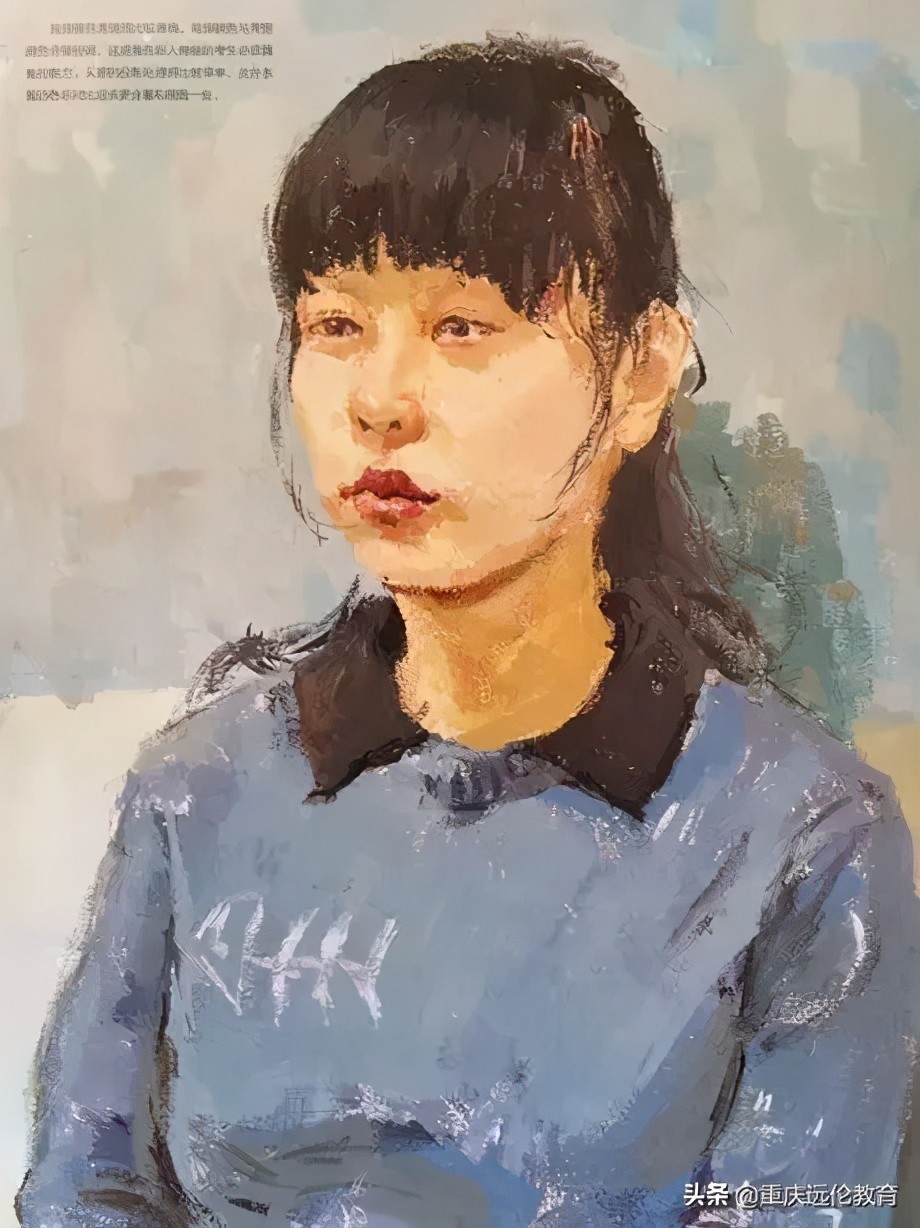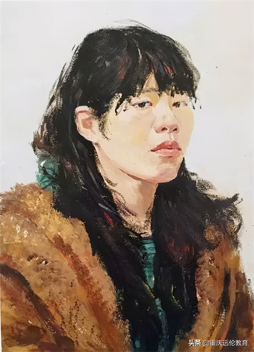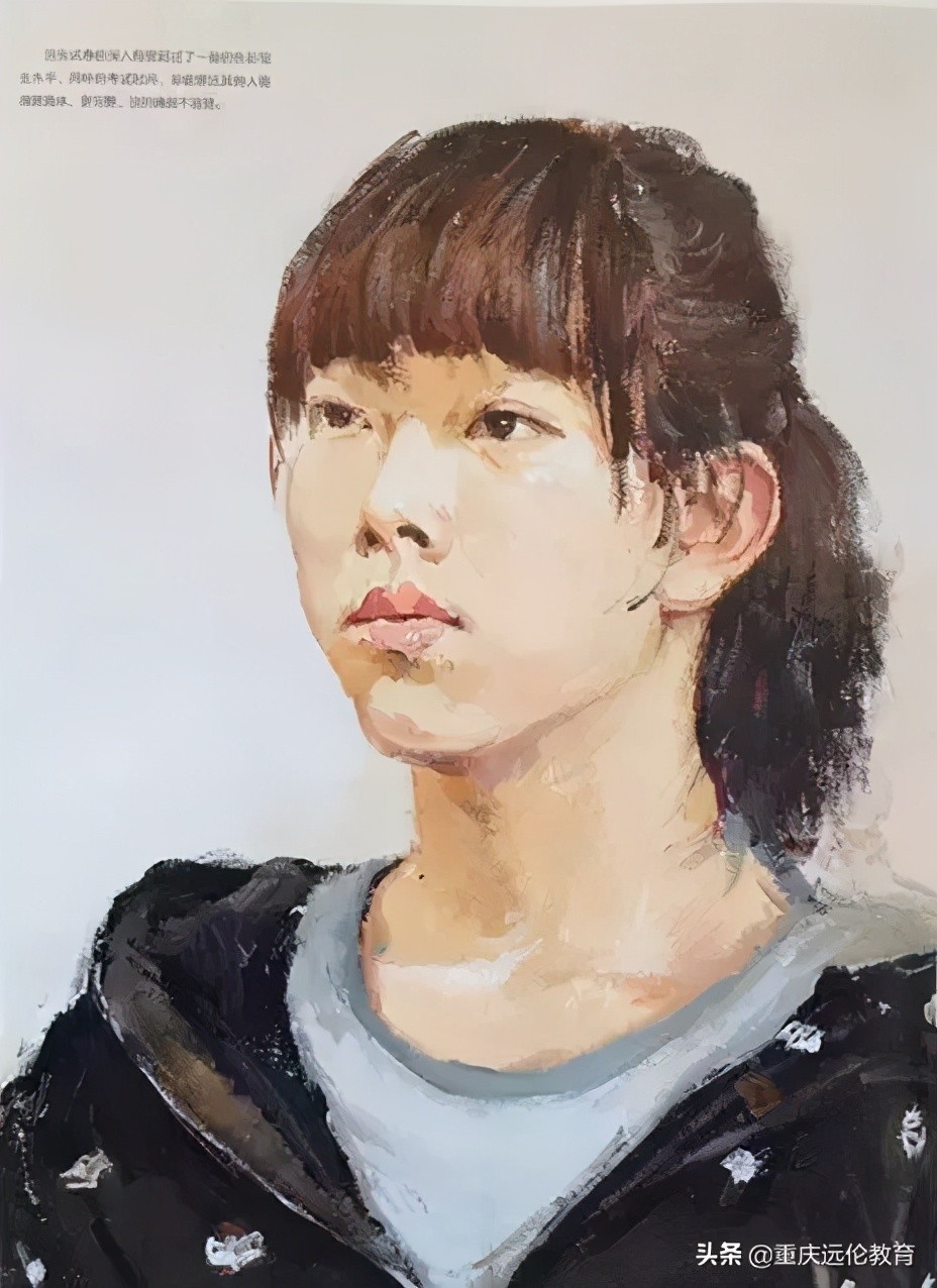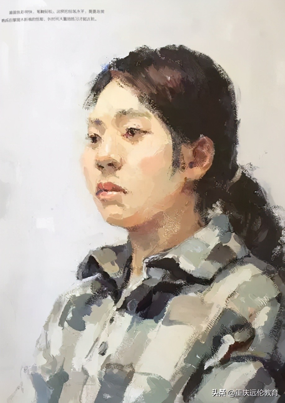 造型色彩:女青年胸像写生。(带肩,模特不戴眼镜、帽子)