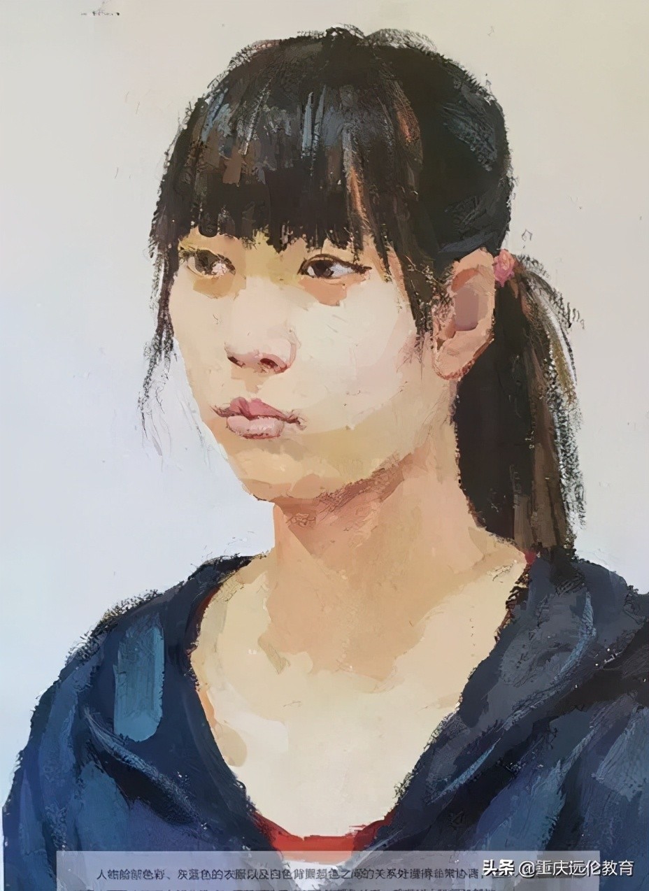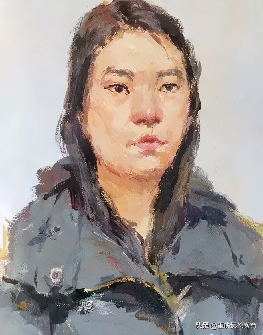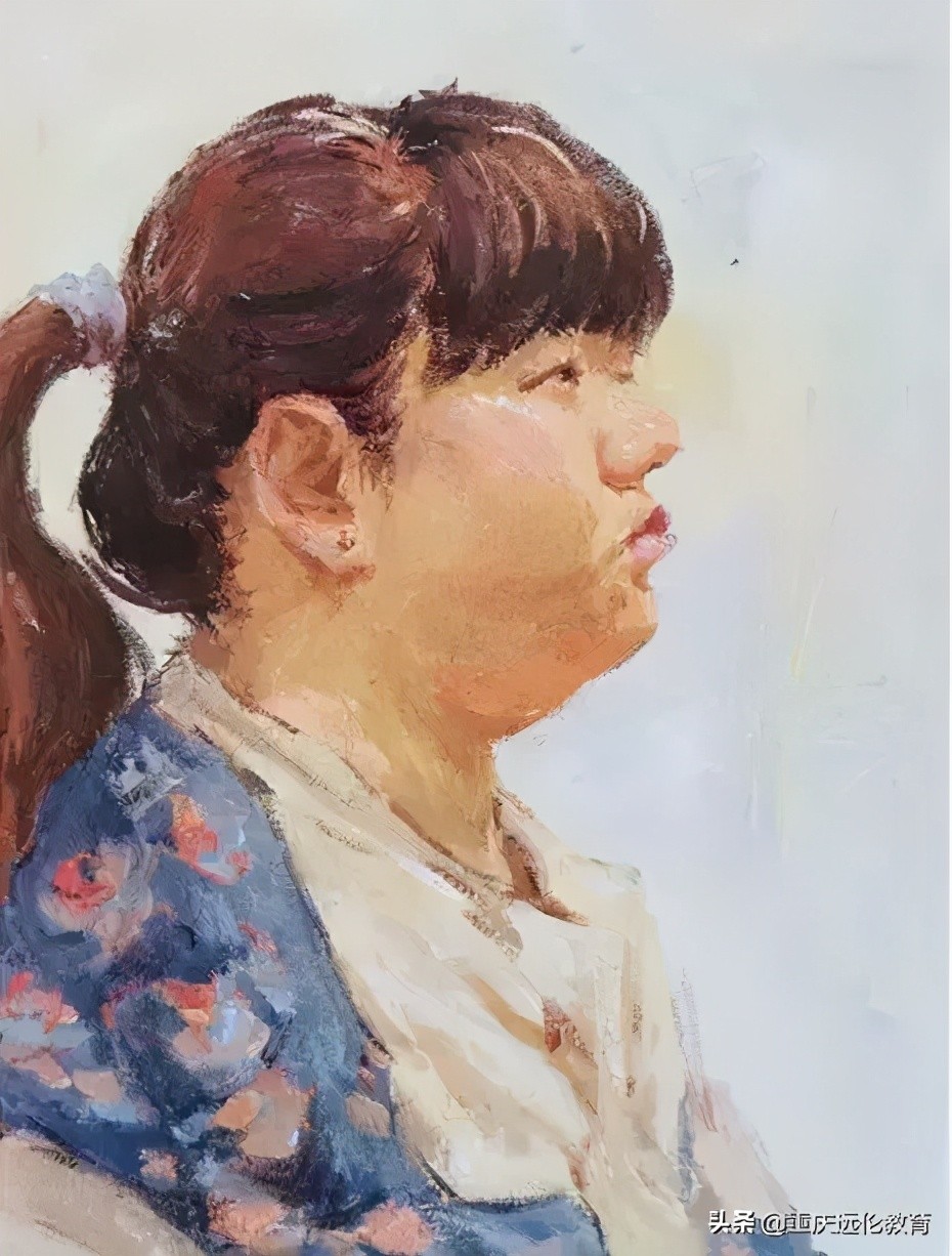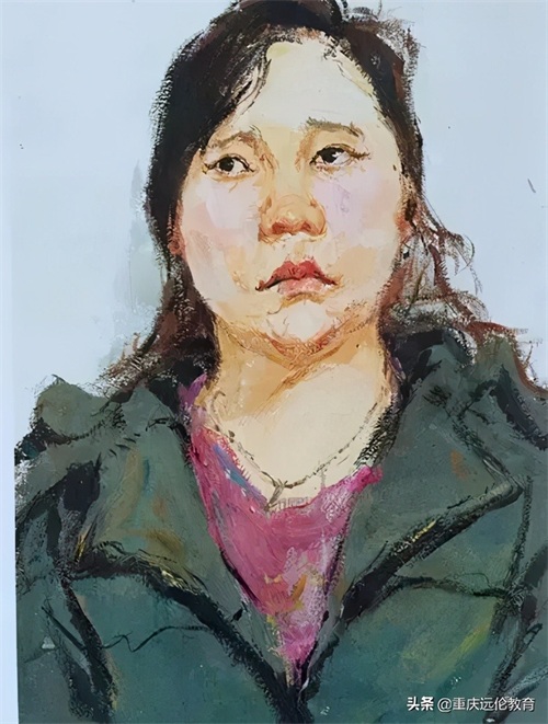 造型色彩:女青年胸像写生。(带肩,模特不戴眼镜、帽子)