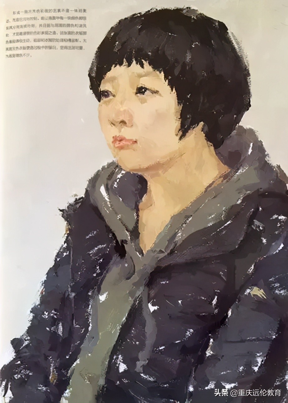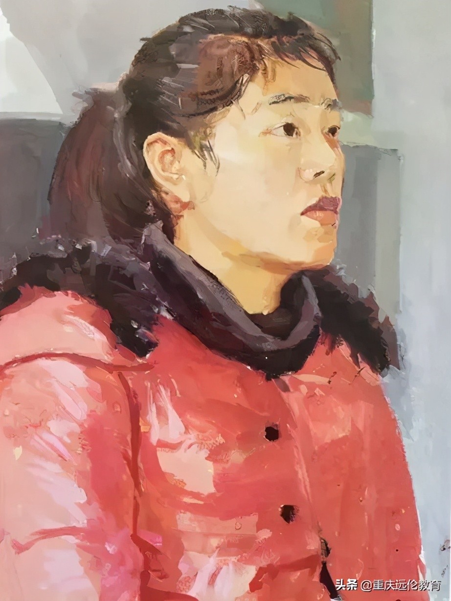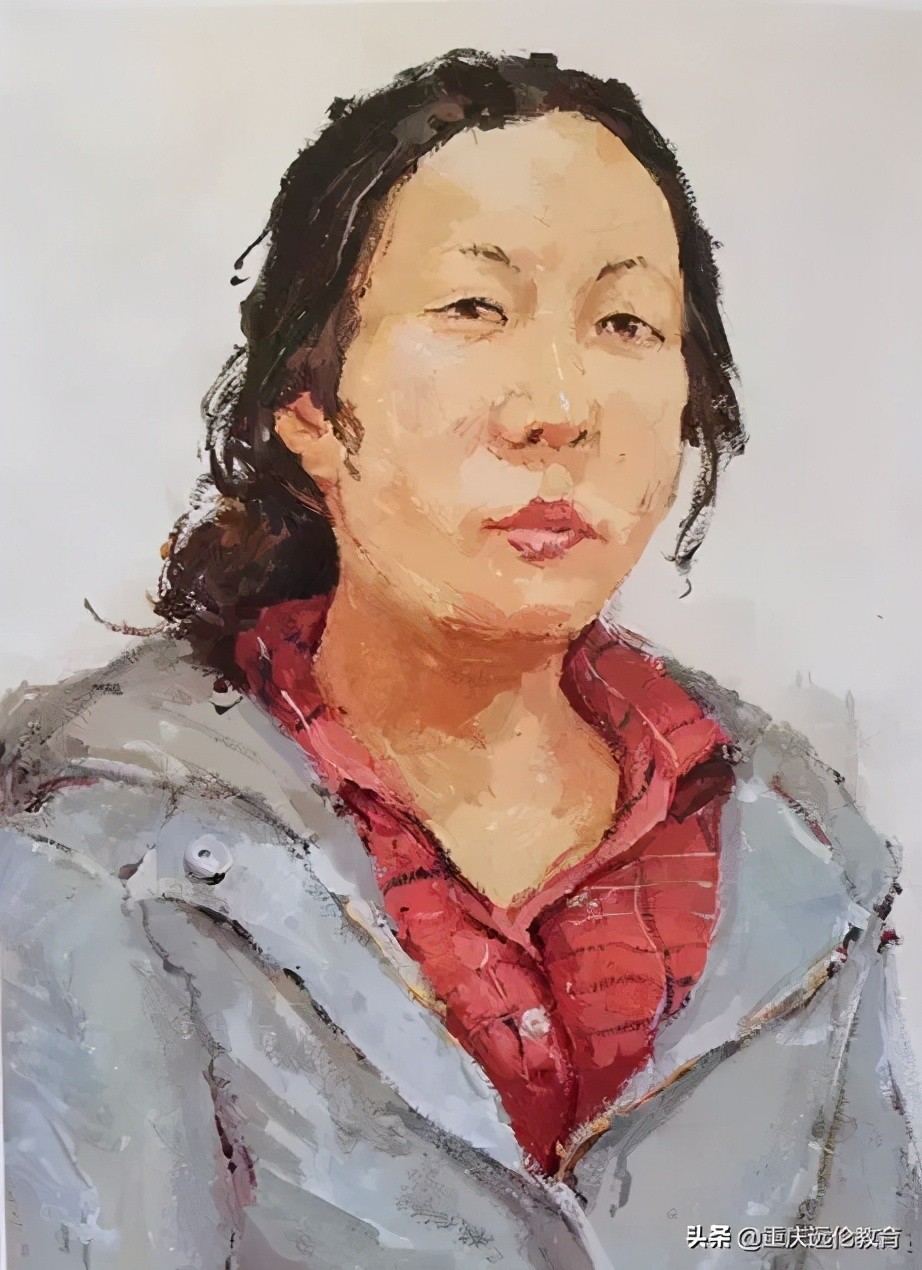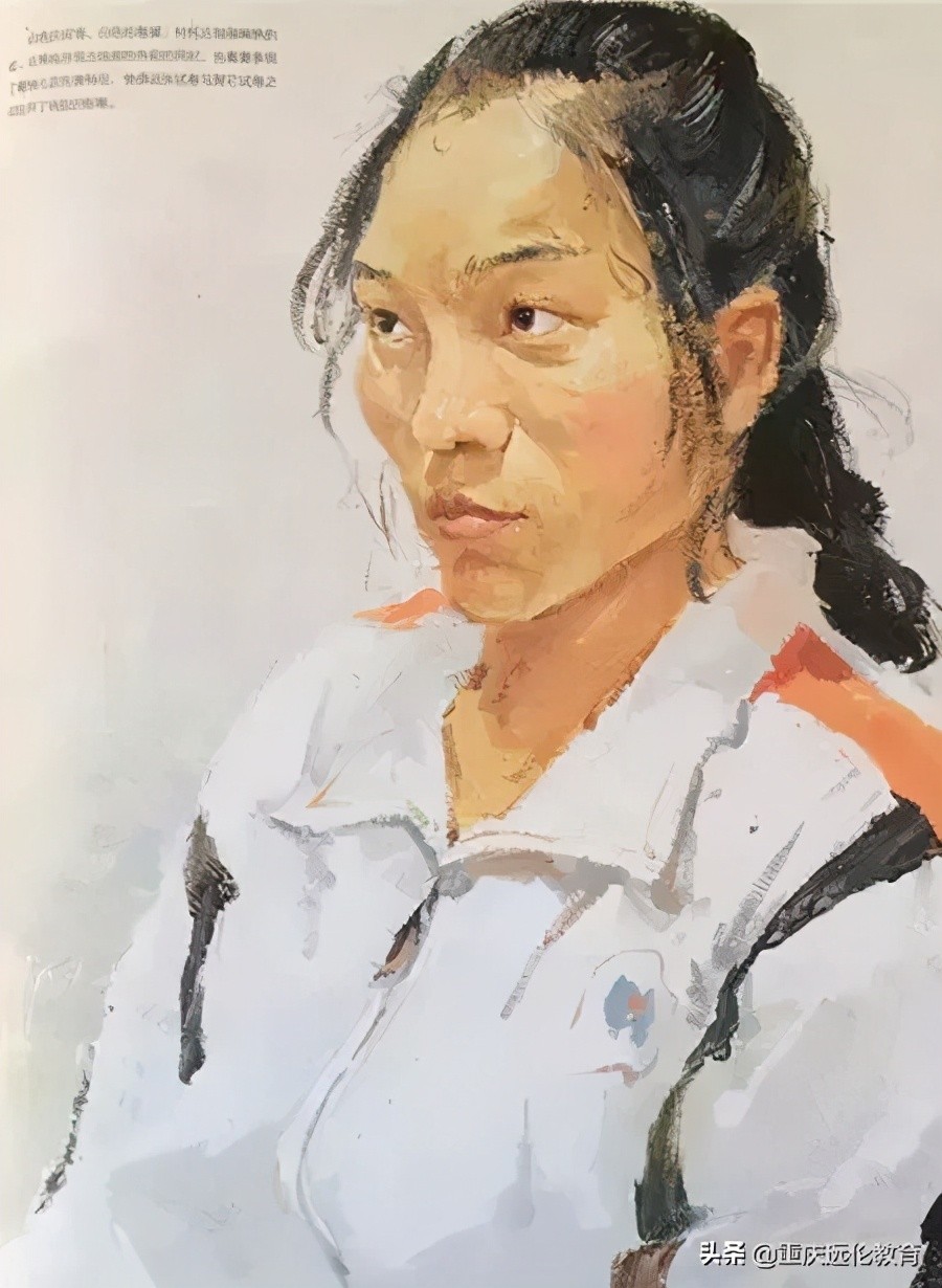造型色彩:女青年胸像写生。(带肩,模特不戴眼镜、帽子)