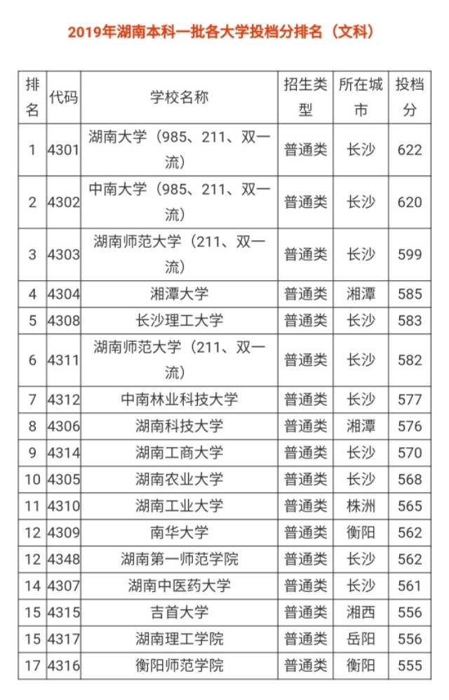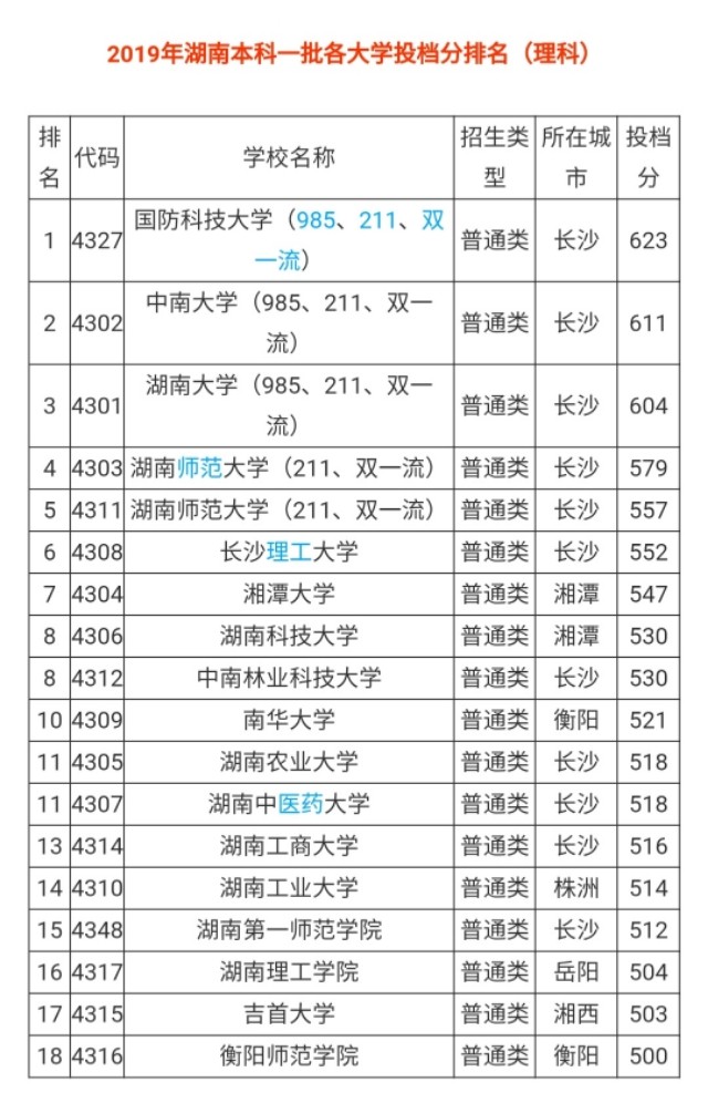 湖南一本院校排名及分析(最全,可收藏,另附2019年分数线)