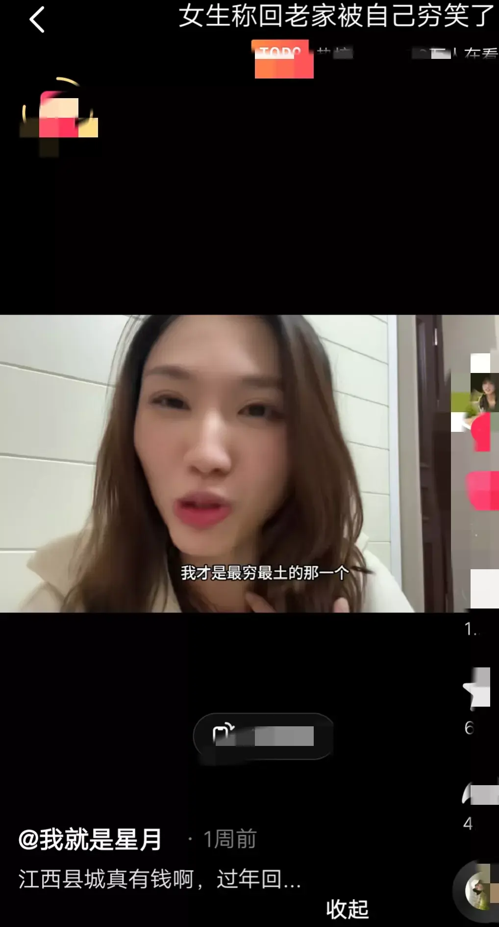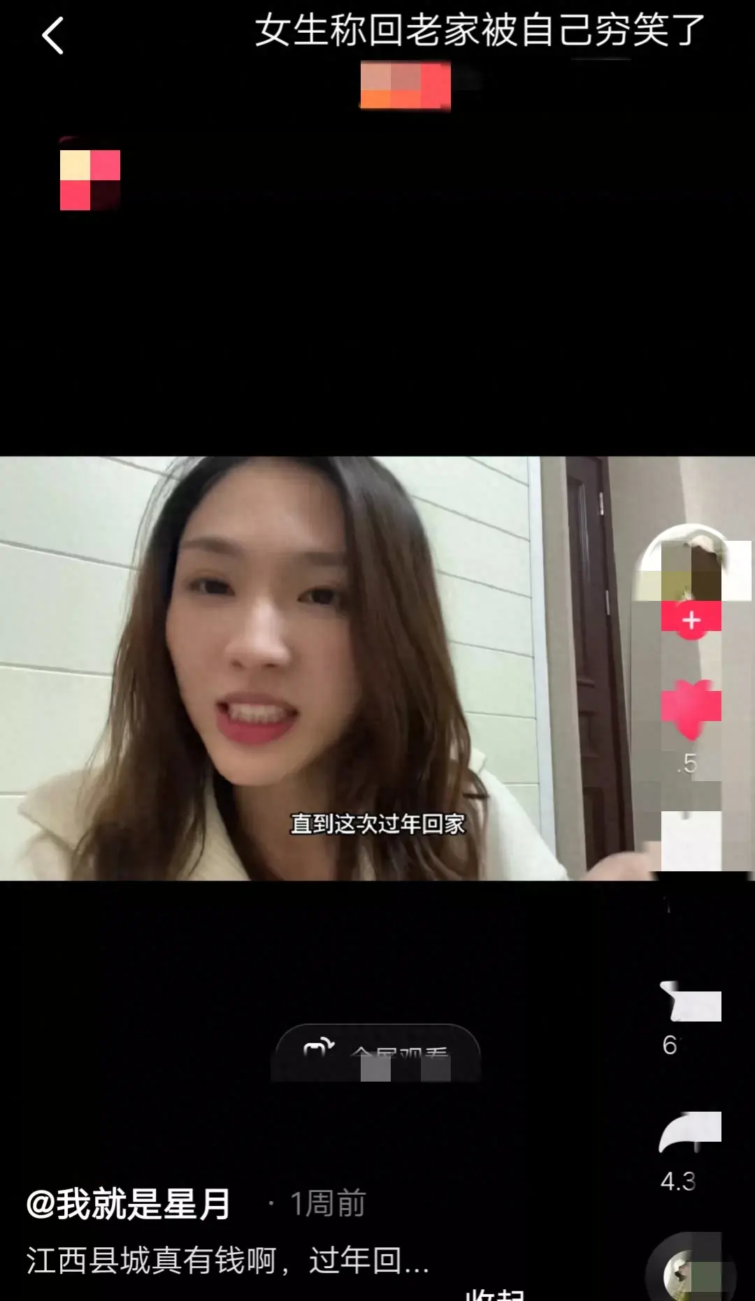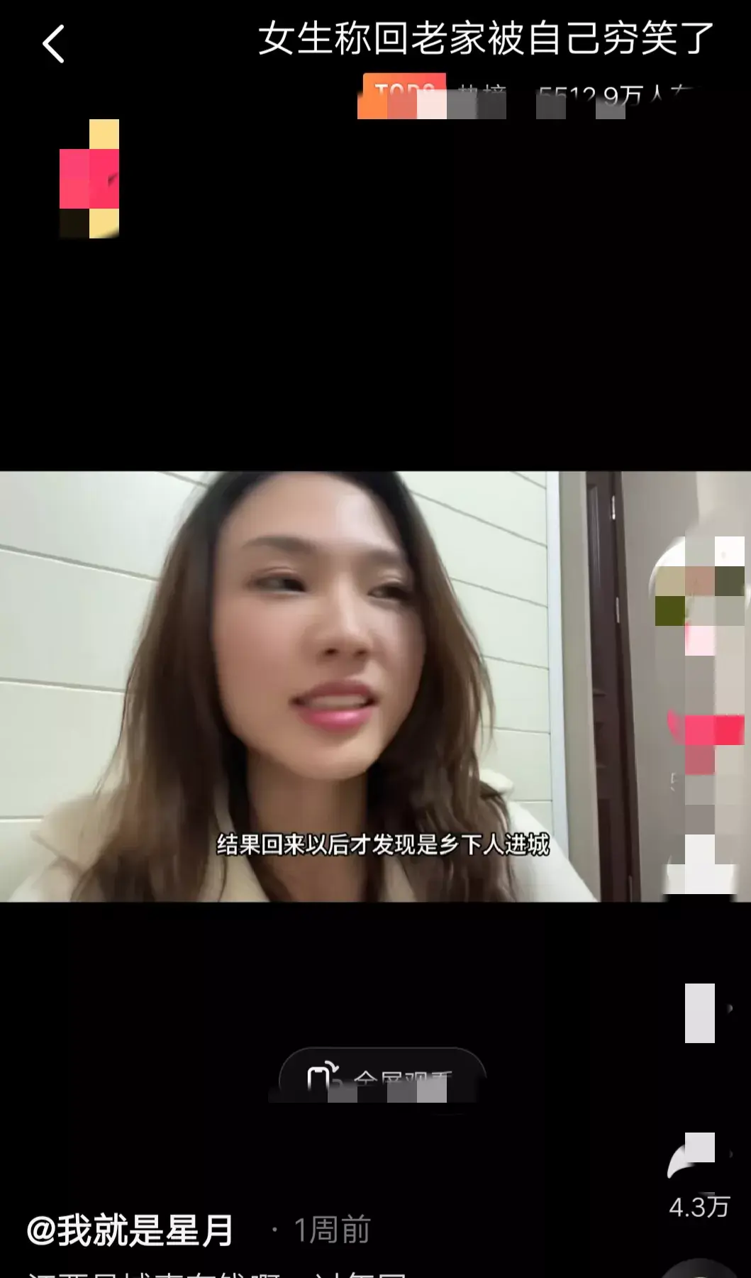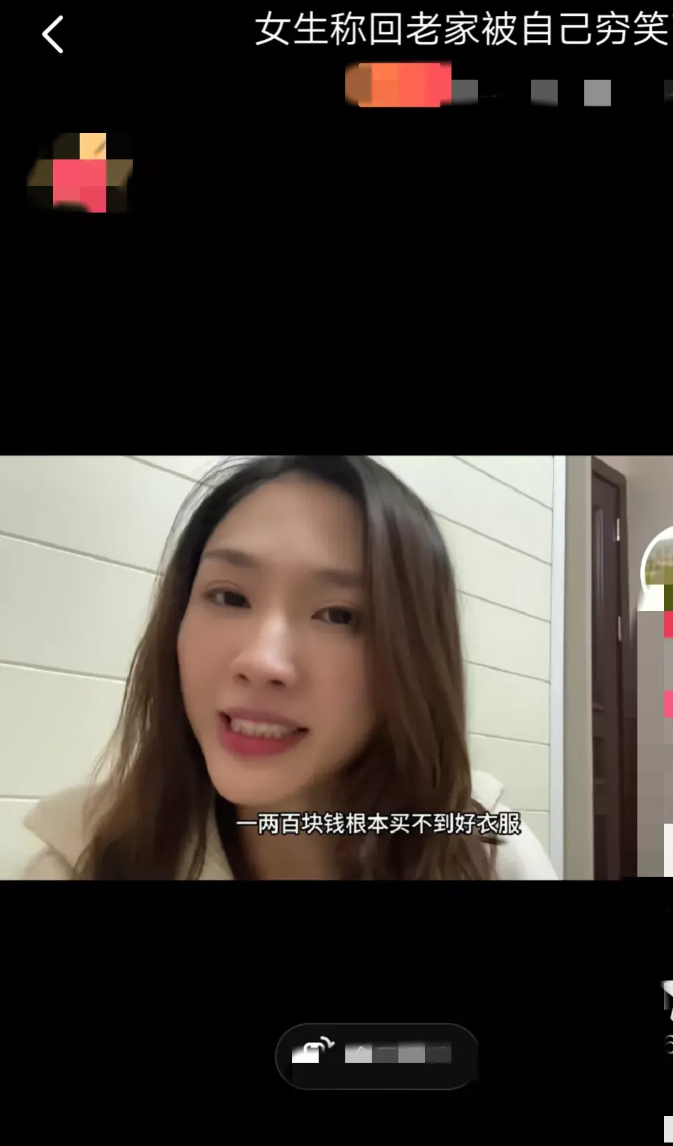 年前该女子以为过年回县城老家,是城里人回村,结果回来以后才发现是乡下人进城。刘姥姥进大观园,我才是最穷最土的那一个。