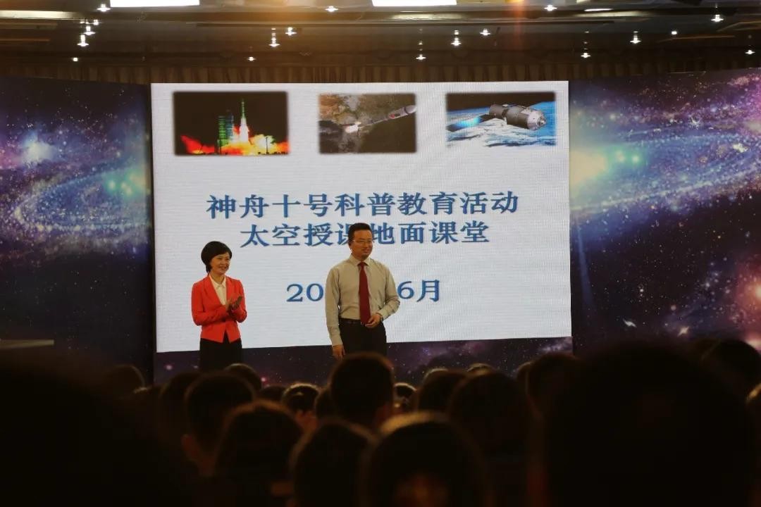 左:1995届毕业生,北京101中学物理教研组组长史艺老师(女)为“神舟十号飞船太空授课地面课堂”主讲教师