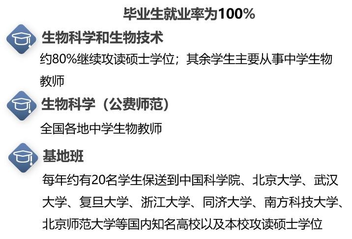 本科招生专业:生物科学类(生物科学、生物技术)、生物科学(公费师范)