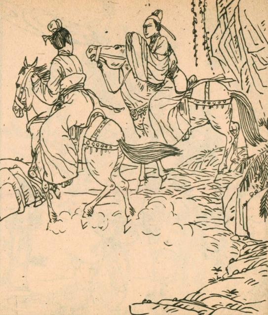 胡郎问刘赤水:“刘公子你不想去拜见岳父和见见别离两年的妻子么?”刘赤水连忙说:“去去去,我和你们去。”说罢,二人纵马沿着山路走去。