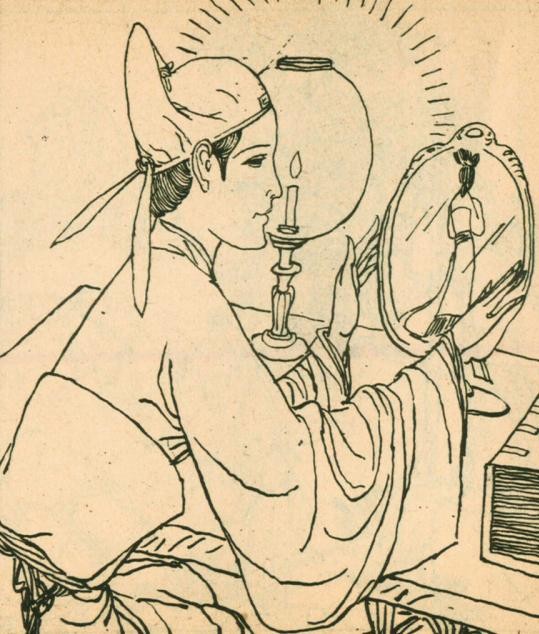 刘赤水把镜子放在书桌上,却见凤仙立在镜中,看去好像有百步的距离,背对着他。刘赤水想起她的嘱咐,闭门谢客,伏案读书,不再外出玩乐。