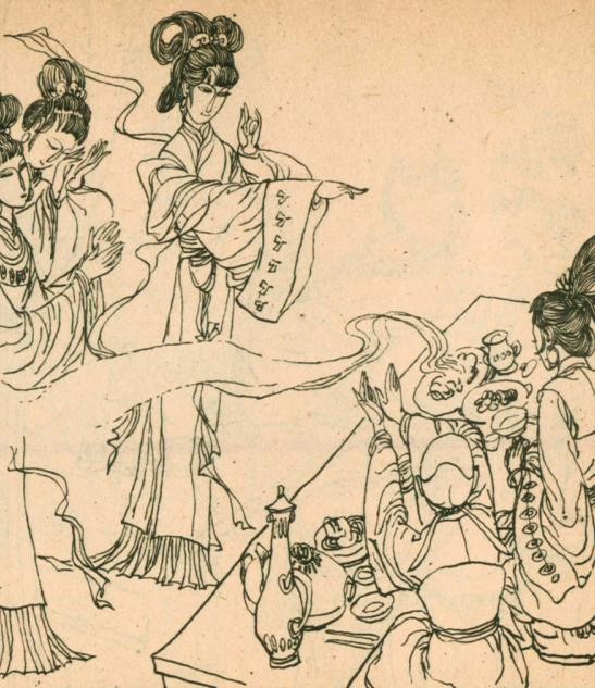 八仙站起来,说:“哼,凤仙的嗓子历来珍贵、可不敢劳她大驾,我和水仙合唱一曲《洛妃》吧!”众人击掌欢迎。