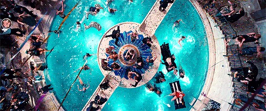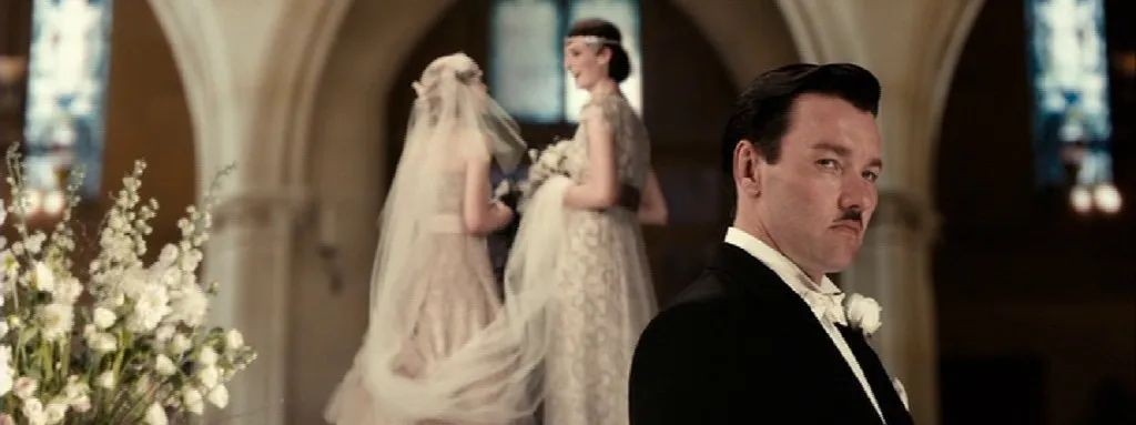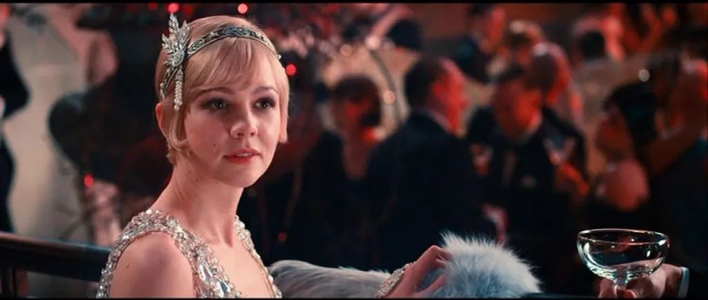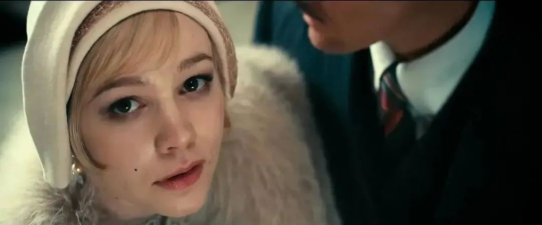 而后半部分的爱情部分,也就是梦的部分则重点突出了。它把盖茨比和黛西的爱情部分在后半部分放慢处理——黛西的扮相纯情,与影片中出现的其他女性比起来,女主的脸非常孩子气,正是如此,才更具有迷惑性。你会觉得,真的,pure,那就是爱情,那是多么美的东西!