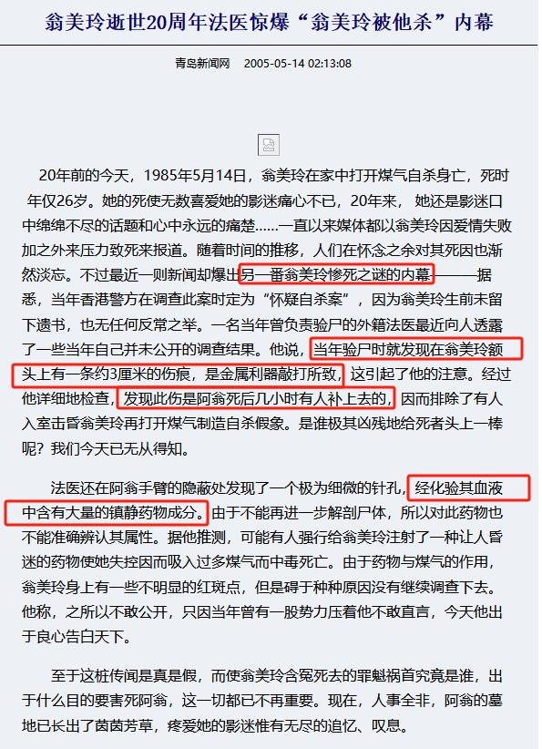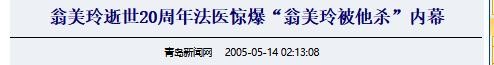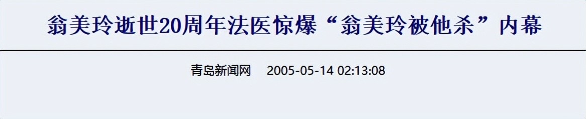 《青岛新闻网》|翁美玲逝世20周年法医惊爆“翁美玲被他杀”内幕 2005.05.14