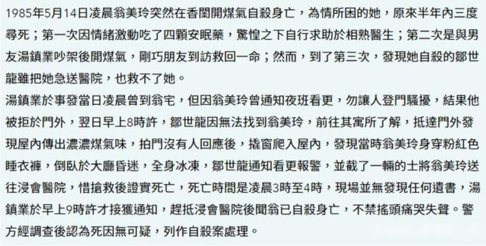 而翁美玲真的是因情轻生么?