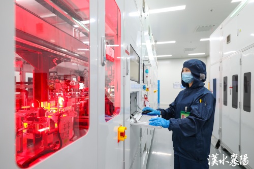 位于枣阳市的双登储能科技项目智能化生产线,工作人员正在操作智能化设备生产储能锂离子电池。