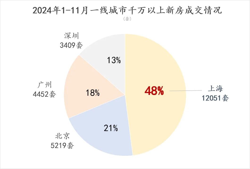 具体来看,2024年1-11月上海千万以上一手豪宅卖了1.2万套