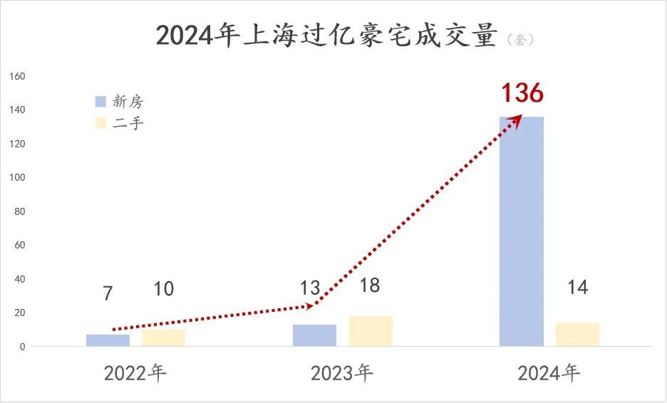 但2024年直接成交了136套超过一亿的新房,加上二手市场,一共150套